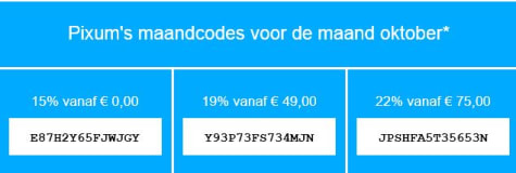 In de maand oktober profiteer je van 22% korting op fotoproducten van Pixum bij aankoop vanaf €75. Ontwerp in een handomdraai originele fotocadeaus. Mokken, kussens, kaartspellen, puzzels en nog veel meer.